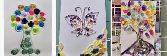 活动在非遗衍纸作品创作中拉开序幕。工作人员详细讲解了衍纸的基本技巧,包括如何卷曲、折叠和拼贴彩色纸条来创建各种形状和图案。参与者们在工作人员的悉心指导下,开始尝试将纸条卷成紧密的圆形,再轻轻展开,形成一个个精致的螺旋形。制作了一系列以“树木”“自然”为主题的衍纸作品,卷曲成枝叶、花瓣、蝴蝶等形态,这一圈一圈的卷纸,好似树上的年轮彰显着强大的生命力,而不同色彩形状的组合,为春天增添了独特的生机与活力。